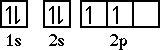 The next element is nitrogen. Nitrogen has an electron configuration of 1s22s22p3. The orbital diagram for nitrogen is,