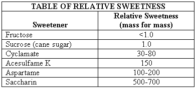 - Discuss artificial sweeteners: saccharin, cyclamate, NutraSweet® (aspartame) and Sweet One® (aseculfame K).