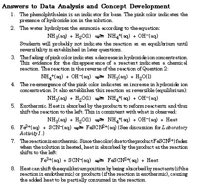 Use the ÒData Analysis and Concept DevelopmentÓ questions as the basis of a discussion to develop the ideas of temperature effects on systems at equilibrium.